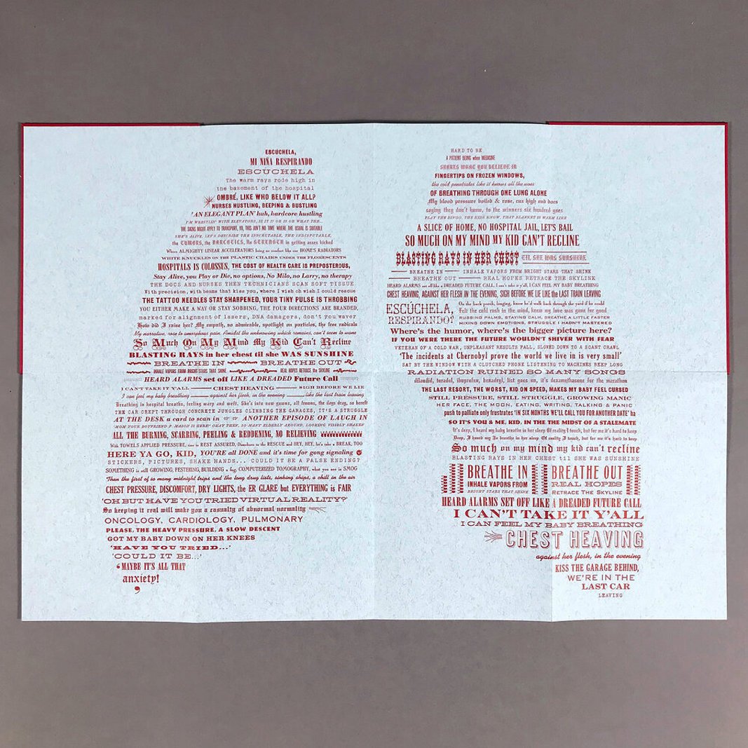 Courtesty of Kalamazoo Book Arts Center – Since 1999, Jennifer Farrell has operated Starshaped Press in Chicago, with a focus on designing &and printing. Respiration, 2019, letterpress, poster book folds out to 20×14”, hard cover