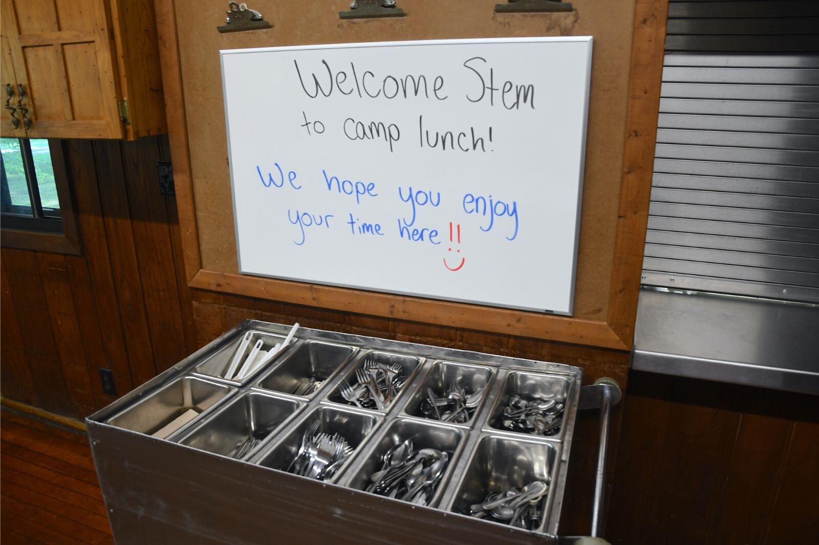 A typical day for residential campers begins at 7 a.m. with a cleanup of their dorms and getting dressed. After breakfast, they do an activity, have lunch, and participate in another activity. Rest hour is at 4 p.m., followed by dinner and all-camp activities.