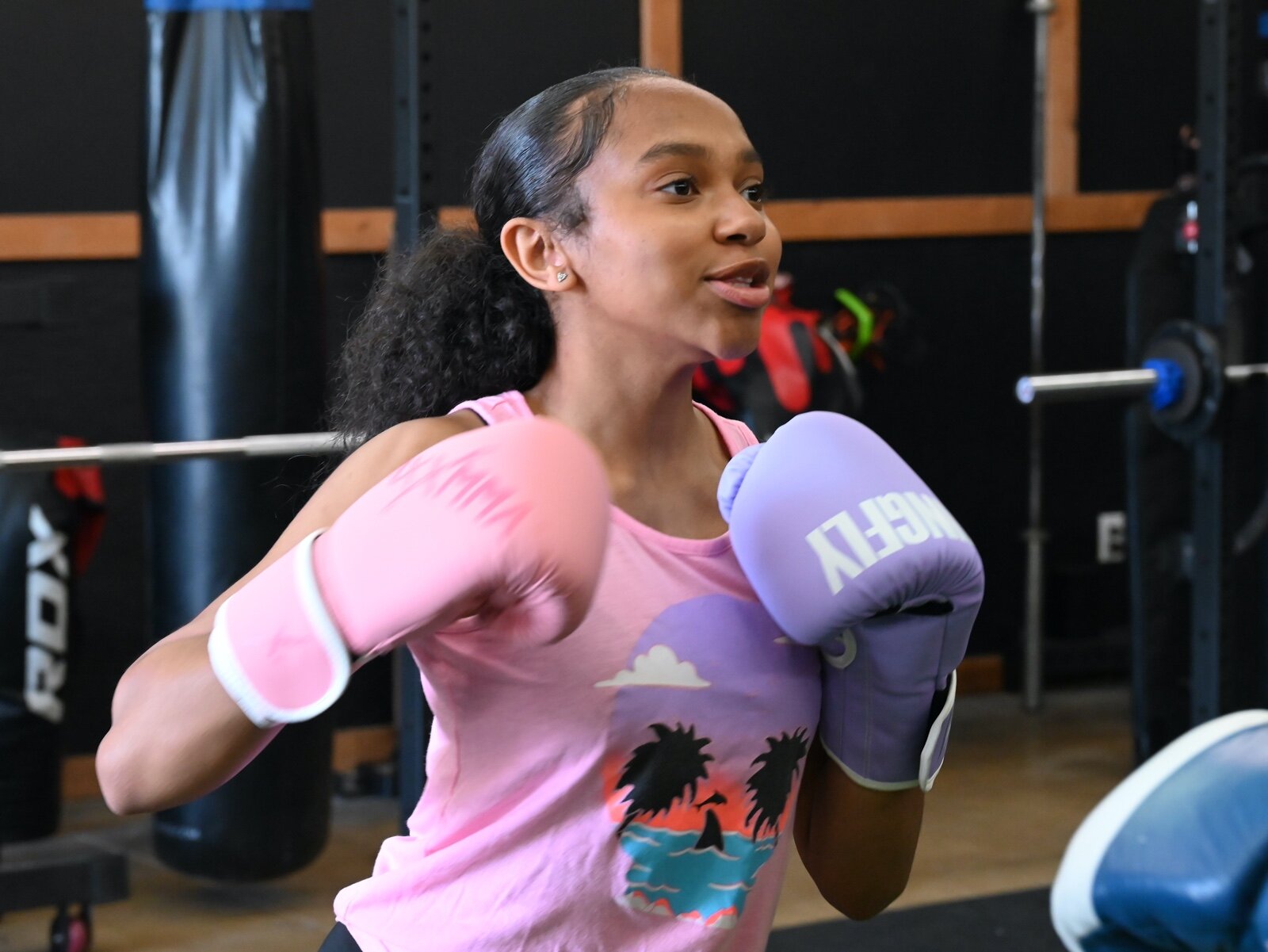 “I didn’t learn anything like this and I wish I had,” she says of the boxing and self-defense. “I got into quite a few situations which wouldn’t have been as scary if I’d known how to defend myself. In elementary school I was bullied a lot and the best thing I knew was to run and the one time I did try to defend myself, I lost.”