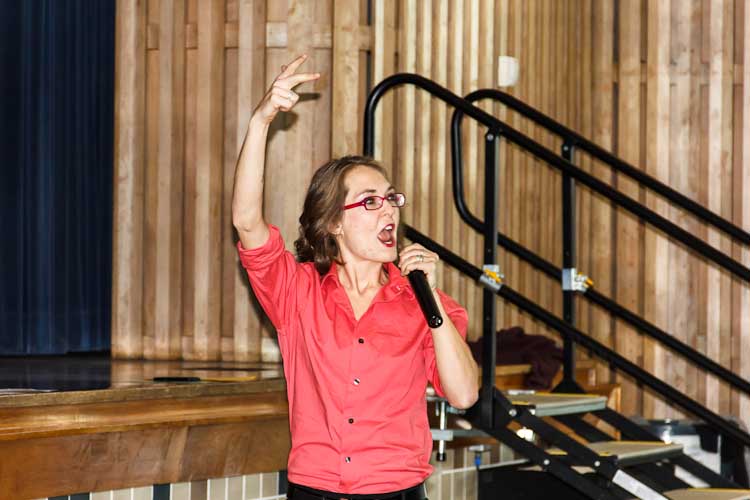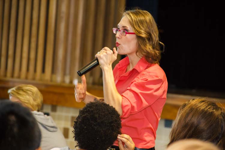 Henderson is also executive director associate of Fire and comes out of a performing arts background. At the cafeteria, she makes her case like a motivational speaker and builds the kids’ enthusiasm.