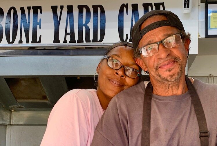 An underused piece of property is now the home of Bone Yard Café Bar-B-Que & Specialty Dogs where Ricky and Yvonne Thrash and their family sell barbecue spare ribs, rib tips, French fries, specialty hot dogs, and side dishes.