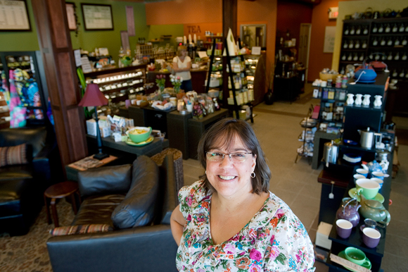 Initially, Kragt worked the shop by herself, with her husband, Mark, helping her wash dishes at the end of the day, and close. Today she has two to three employees. She maintains a presence throughout the shop, moving between customers, asking about tastes, steeping, demonstrating, chatting, selling.
