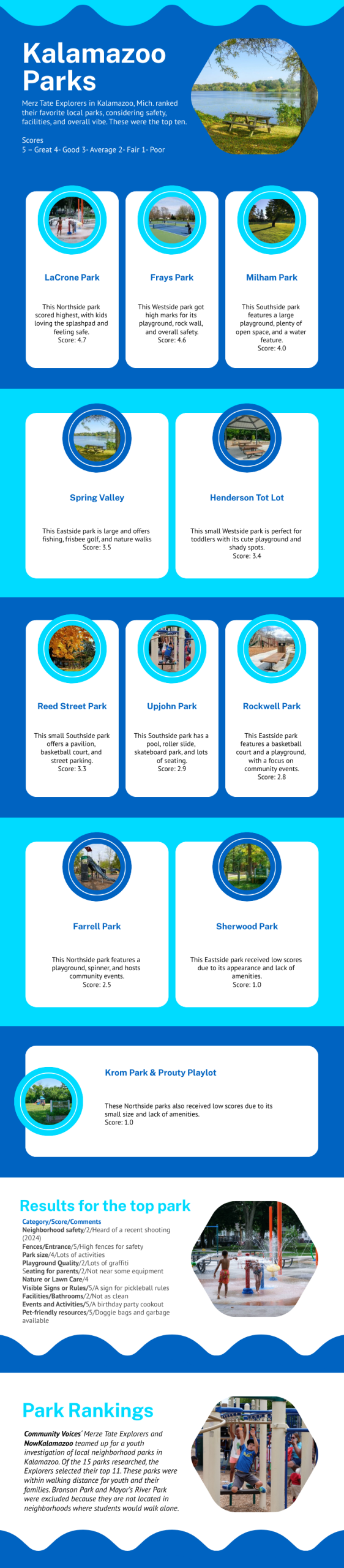 NowKalamazoo and the Merze Tate Explorers teamed up to find out which parks get the highest marks. The original NowKalamazoo story was published here. The Community Voices story by Merze Tate Explorers is here.