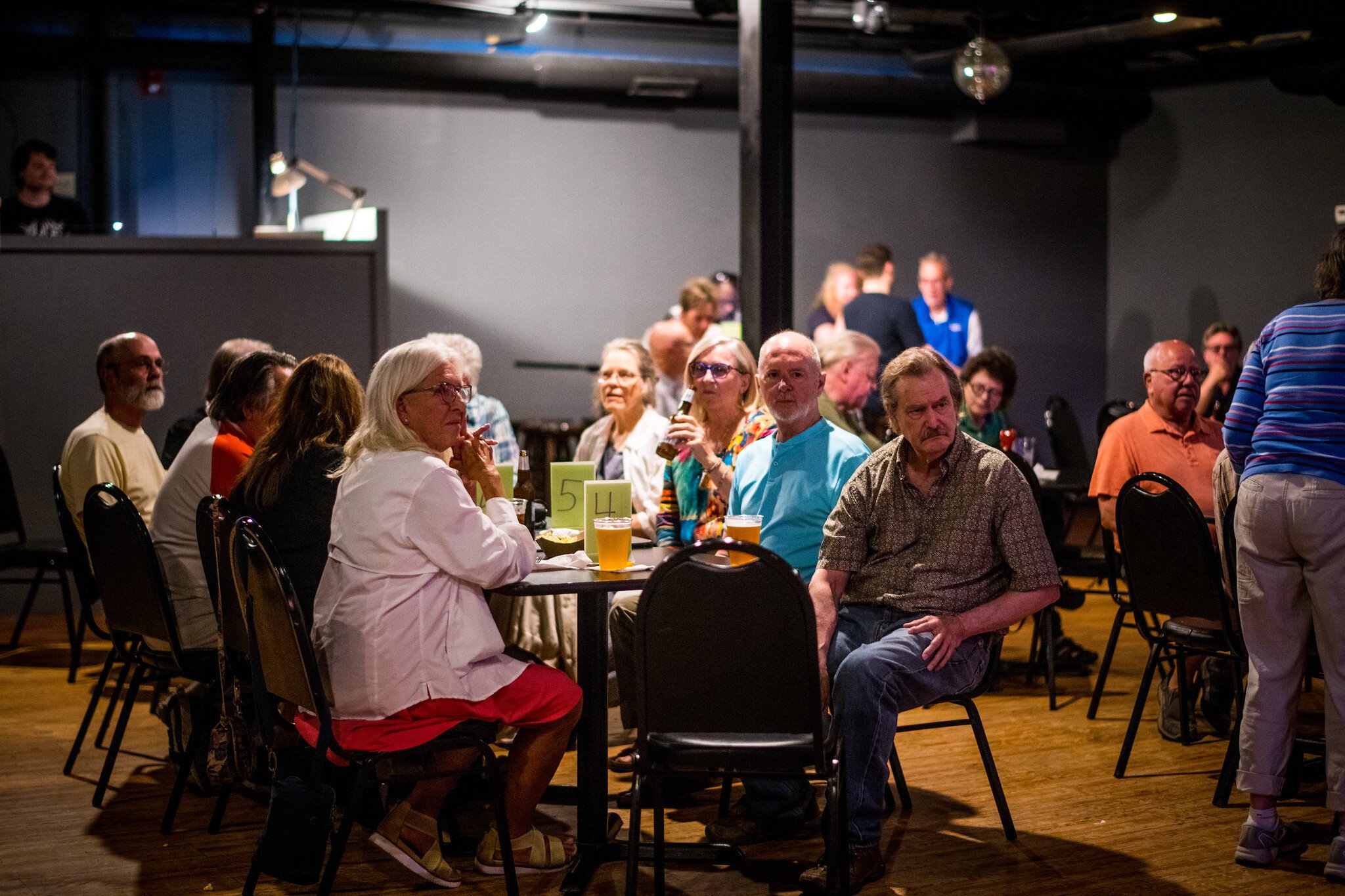 The Kalamazoo “Geezer Happy Hour” has been building up a following since starting in 2023. A lot of the crowd is there thanks to Judy Sarkozy, of Sarkozy Bakery. A regular, Michael Betz, warns before the show that she’s “the ringleader” of a group of rabid fans.