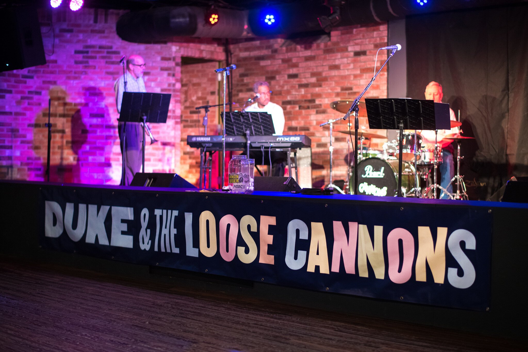 Duke and the Loose Cannons play a mixture of jazz, blues, Motown, soul, and rock and roll.