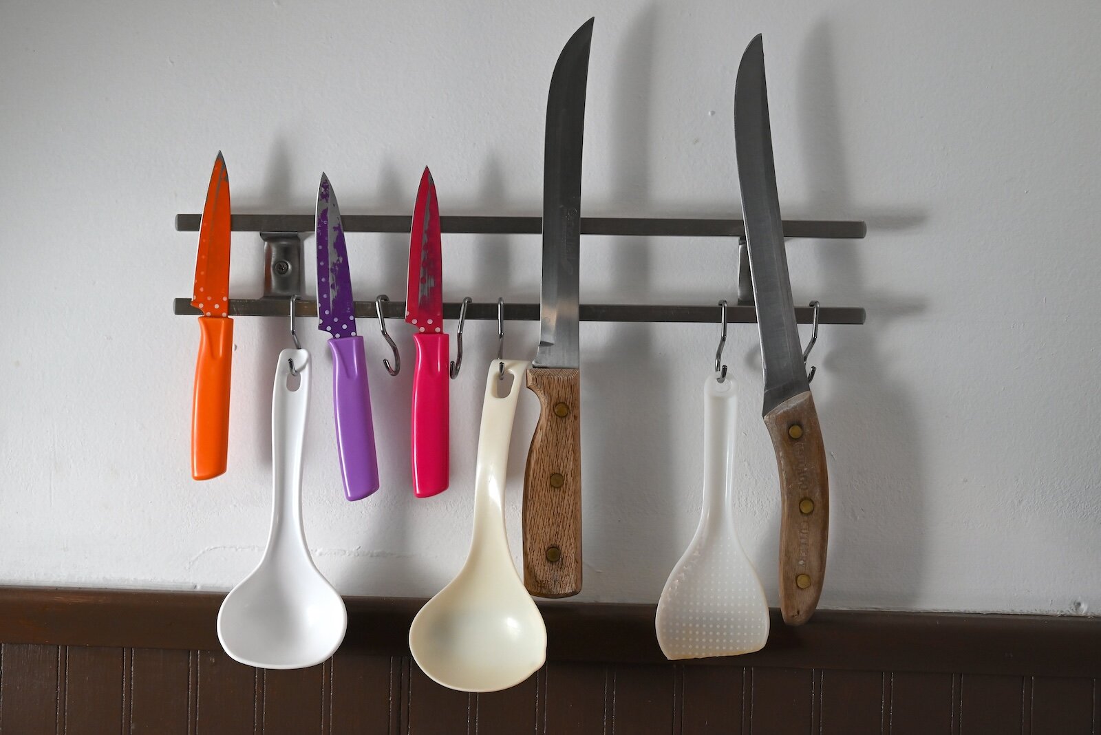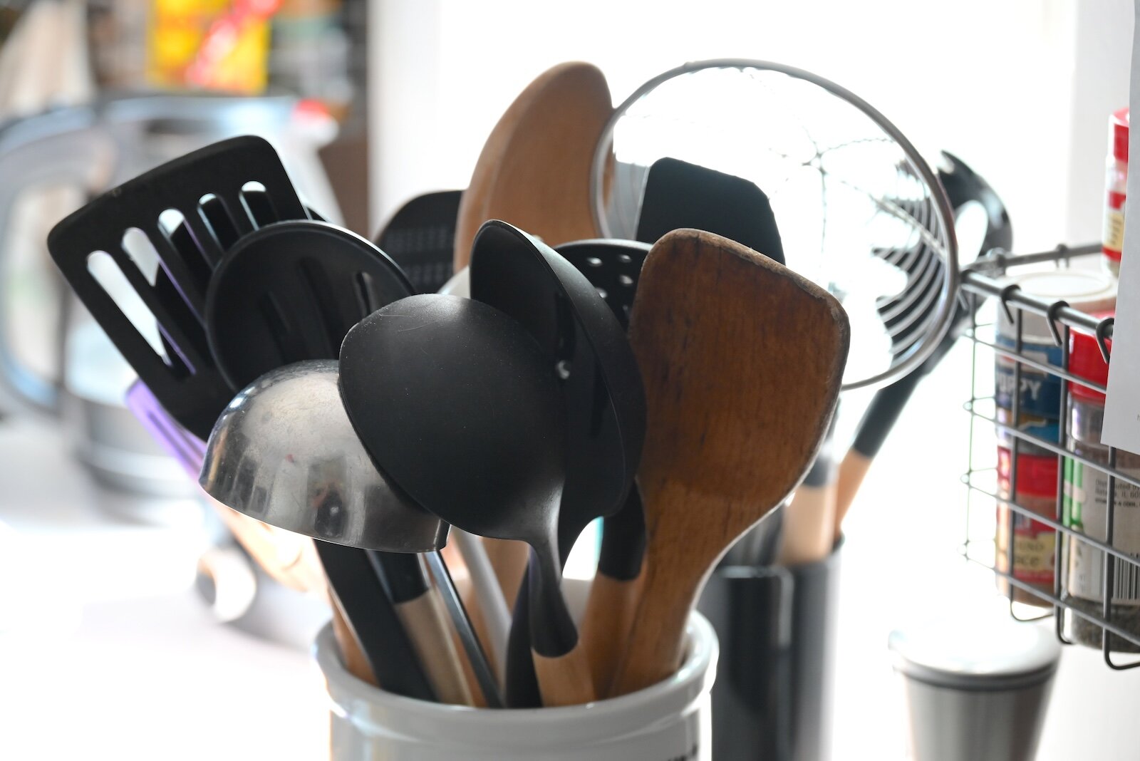 Cooking utensils are found on the counters and along a wall in Stacey Kornegay’s kitchen.