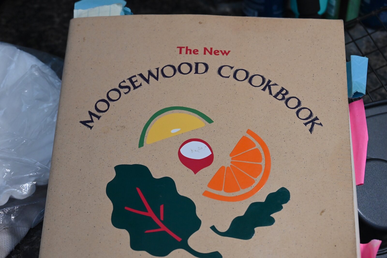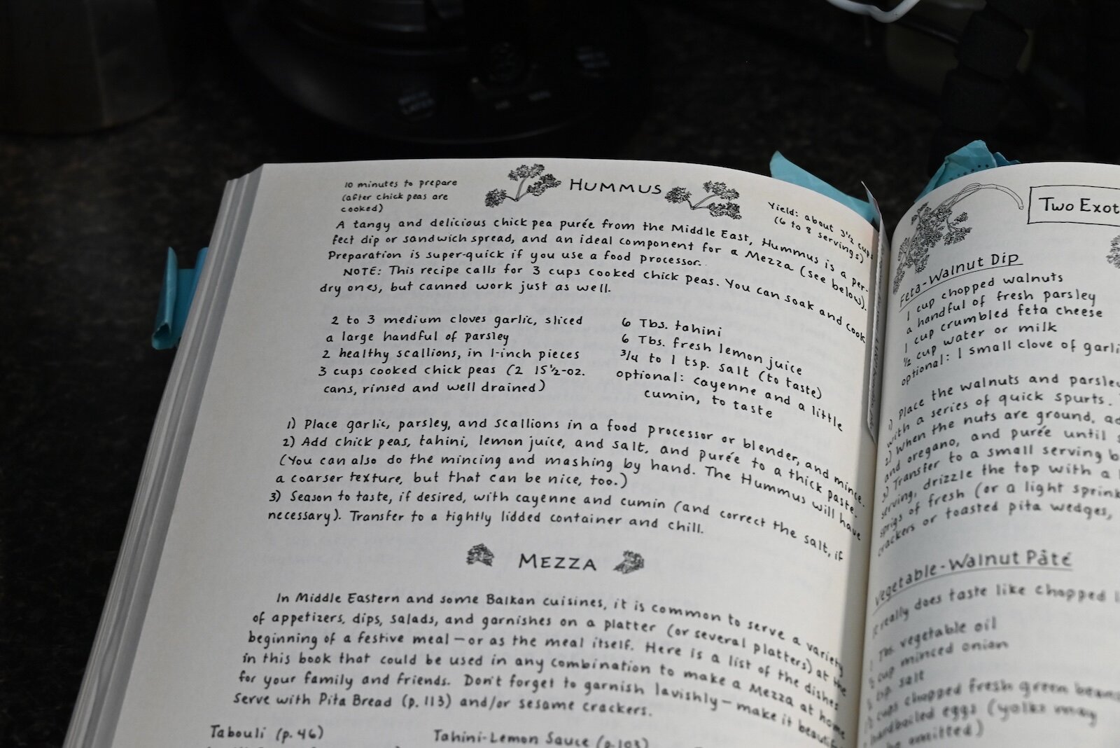 The recipe Stacey is using for making hummus comes from The New Moosewood Cookbook.