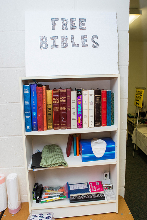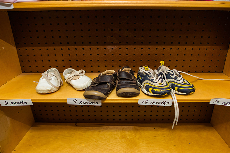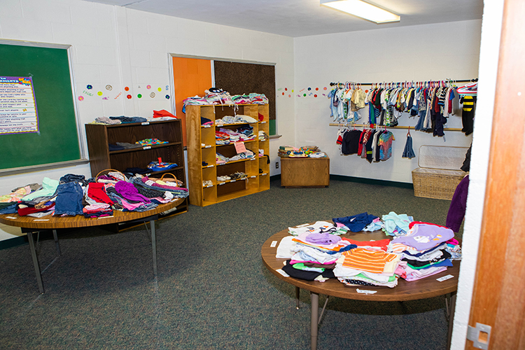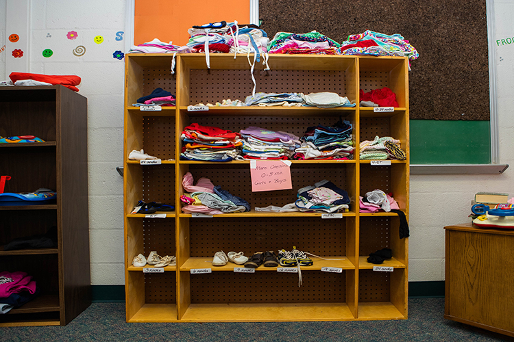 By design, the pantry, library and clothes closet are set up to allow users to maintain their dignity in the face of struggles they may be having. Pastor Crystal Thomas says the clothes closet, which is open on Wednesdays from 1-6 p.m., has been organized to look like a clothing store with empty classrooms in the church’s basement transformed into individual departments that house clothing for women, infants and children, and men.