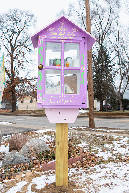 “ULABA (the Urbandale Level Park Area Business Association) provided $100 in funding for us to build a small giveaway food pantry that’s filled by the community with items that are taken by the community and we have that sitting right next to the little free library,” Ballard says. “These are both located in our parking lot.”