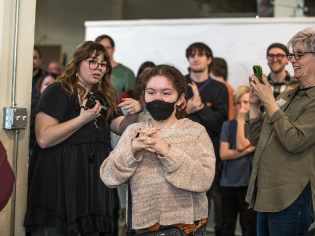 The event used to be on an Art Hop night, but arthoppers made “it so incredibly crowded,” Abshear says. “You couldn’t even move through the space.”