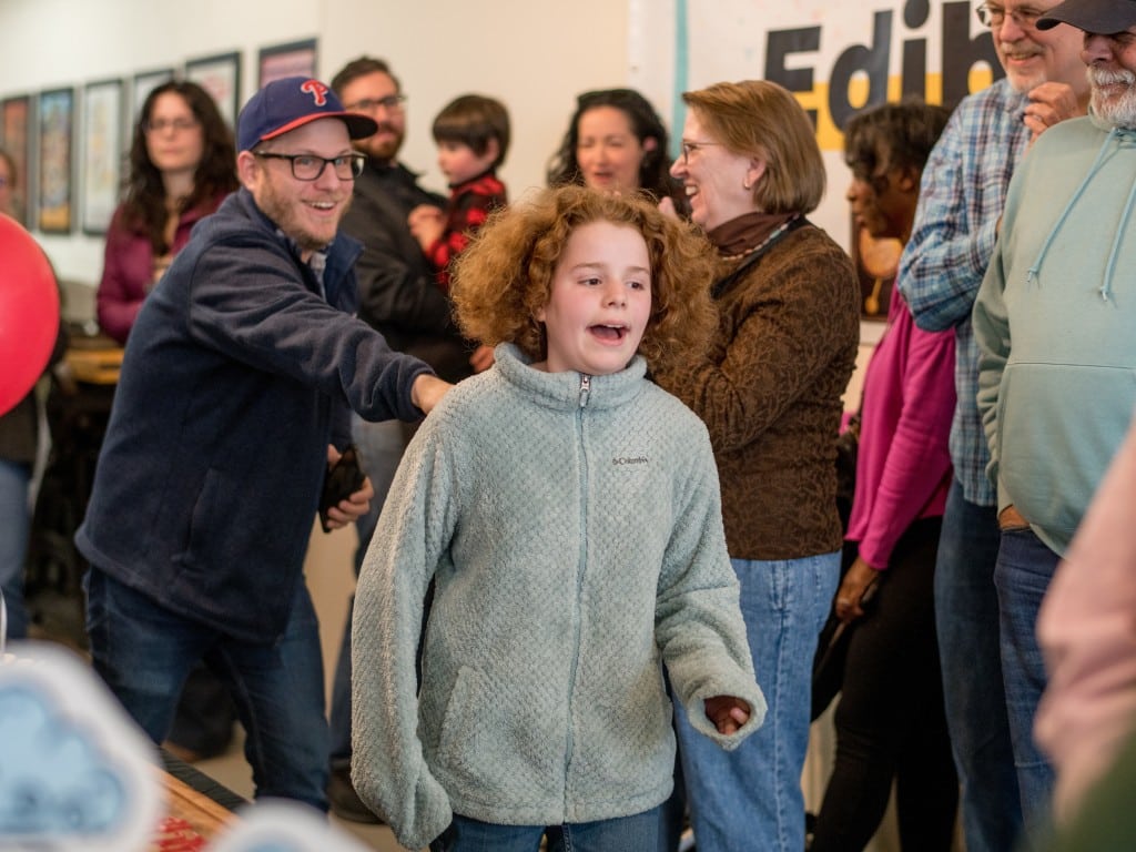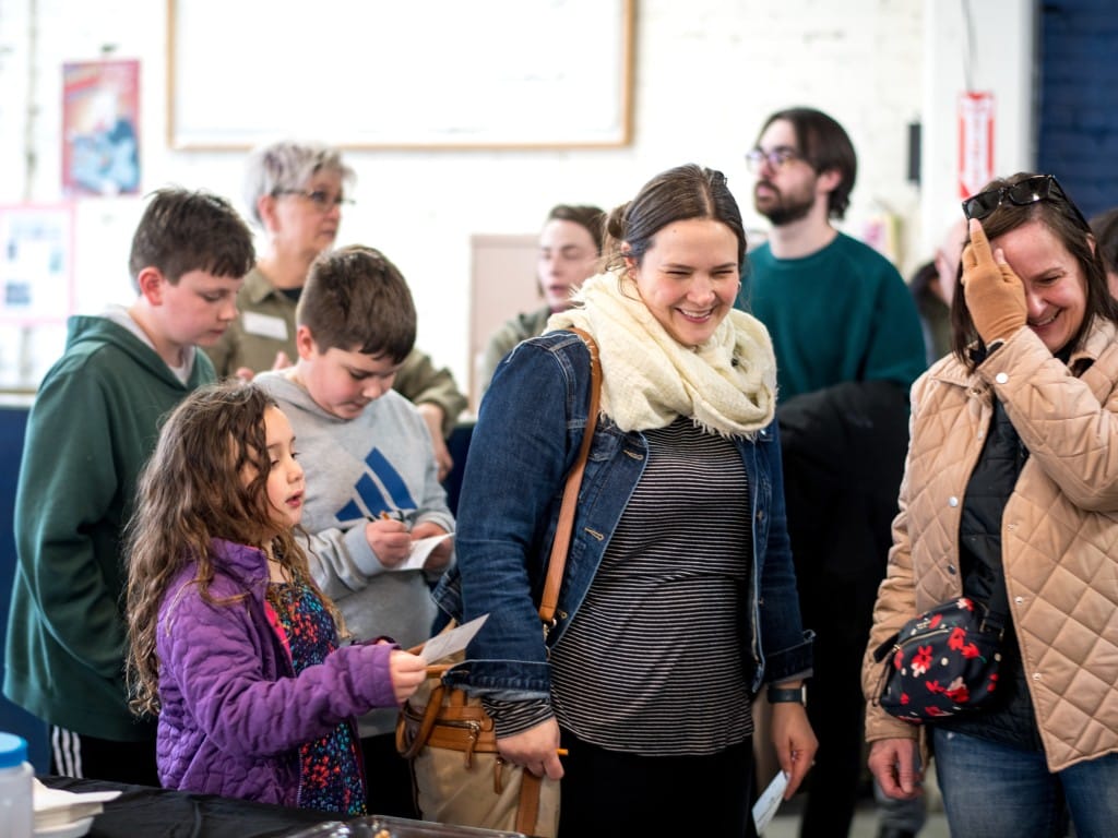 Many parents and kids packed the Kalamazoo Book Arts Center for the 2026 Edible Book Festival.