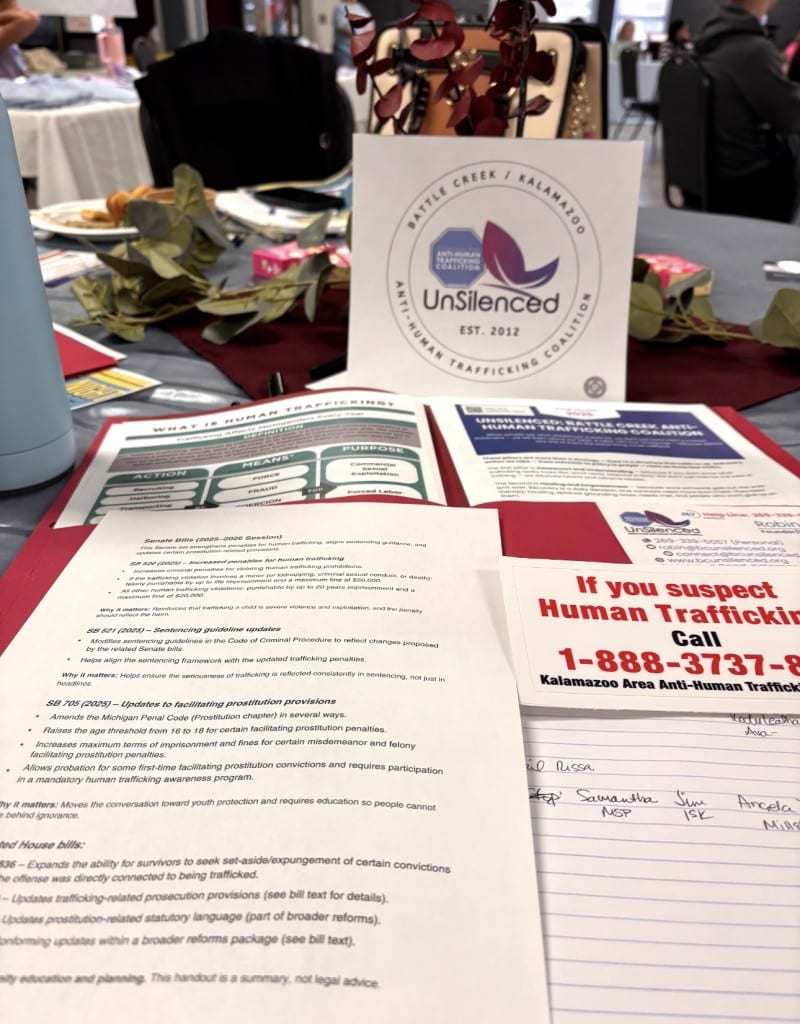 Mandoka is wasting no time in making connections, including one with Robin Bolz, a survivor of human trafficking who is the Founder and Director of Operations for Battle Creek UnSilenced Anti-Human Trafficking Coalition. On January 31, representatives with NHBP and its Tribal Police department were among more than 60 survivors, community members, and frontline professionals who gathered at the Comstock Community Center for “Shine A Light UnSilenced Community Awareness Day.”