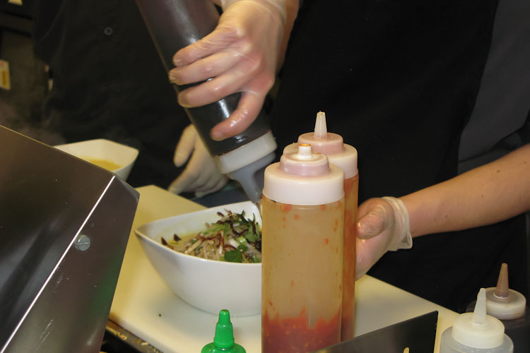 For those who are open to trying new things, Lance Allen says he recommends asking for the “House Way” which is a combination of garnishes. “You may never have thought to put pickles in soup or garlic in ramen, we’re giving people choices,” he says.
