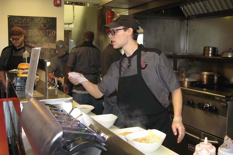 Even though the menu contains a number of Asian-inspired items, he says he discourages labeling it an “Asian” restaurant, preferring instead to say that it’s a “ramen shop that branched out” to include what he and his wife like to eat.