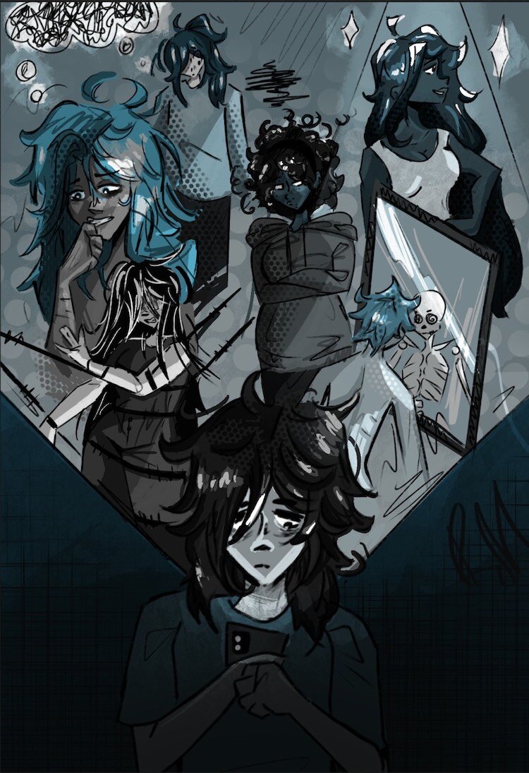 Artist’s Statement: Working on a project about something like body dysmorphia was quite an interesting process for me, I know there are a lot of clichés out there about body image artwork and such, and I tried to make an impactful piece where everyone’s body type is reminded that they’re okay the way they are and that it’s perfectly normal to feel insecure sometimes.