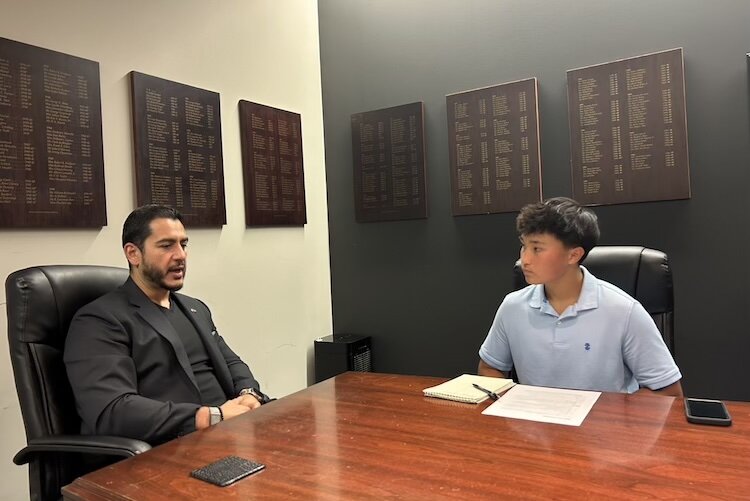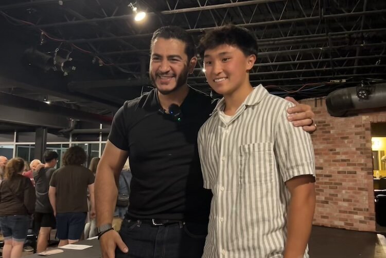 U.S. Senate candidate Abdul El-Sayed with Voices of Youth Braylon Youker during El-Sayed’s recent visit to Kalamazoo.