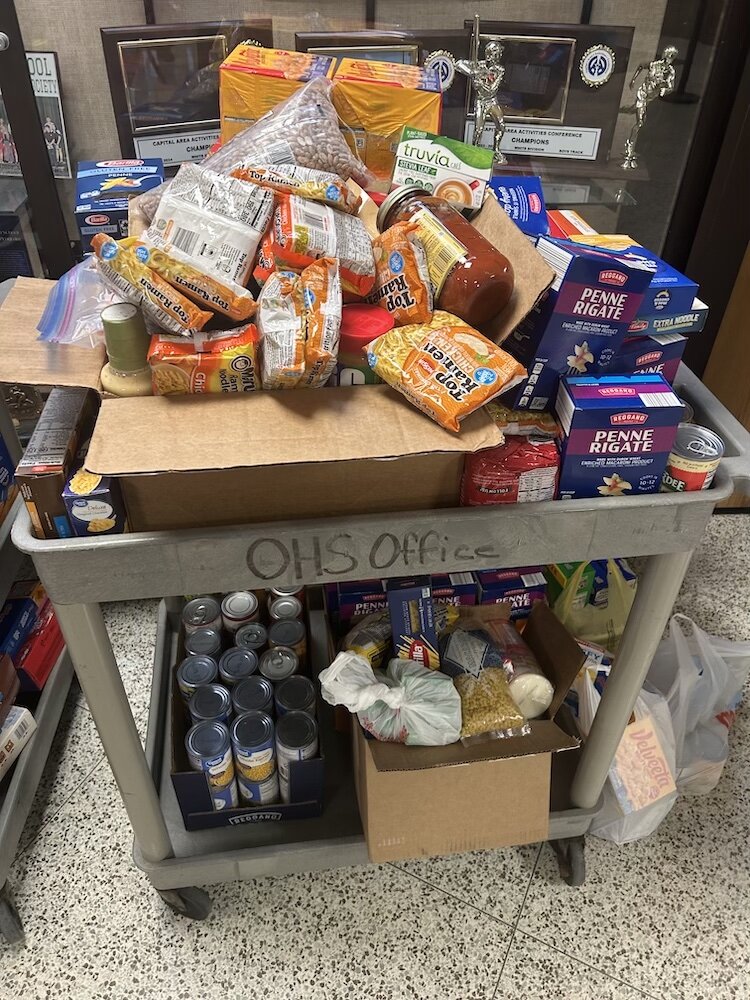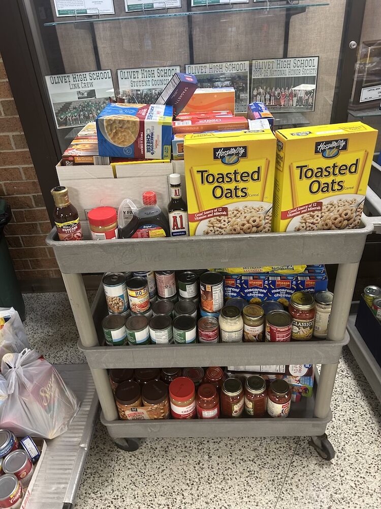 This year the students and staff of Olivet High School managed to raise 3,492 dollars in food and supplies. Student Jenna Mertz says, “It makes me feel happy knowing that I am supporting someone who might not have the means to get food and things like that.” The food collected during the food drive will help Olivet families have meals for the holidays and beyond.