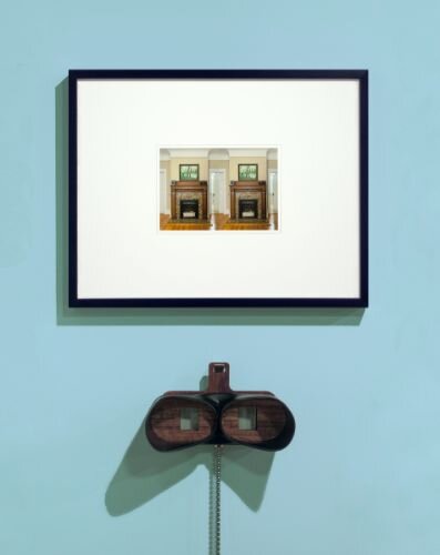 Woolpert’s work “Red Twin Blue Twin” combines stereograph portraits she made of her and her sister in 2010 and ultimately allows them to be seen as one person rather than the Blue Twin and the Red Twin. Colleen wore blue as a child to be distinguished from Rani, who wore red.