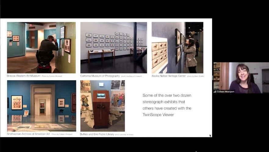Woolpert’s TwinScope Viewer, paired with wall mountings for stereographs in frames or display cases, has been used in exhibitions of Woolpert’s work as well as in interactive exhibits by others in libraries, archives, and museums in the United States, and abroad, including the Smithsonian National Museum of Natural History in Washington, D.C., the Museum of Modern Art in New York City, and the Stiftelsen Lillehammer Museum in Norway.