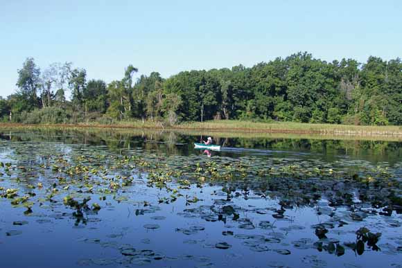 Lynn Steil monitors the Smith property by kayak. Photo by Emily E. Wilke.