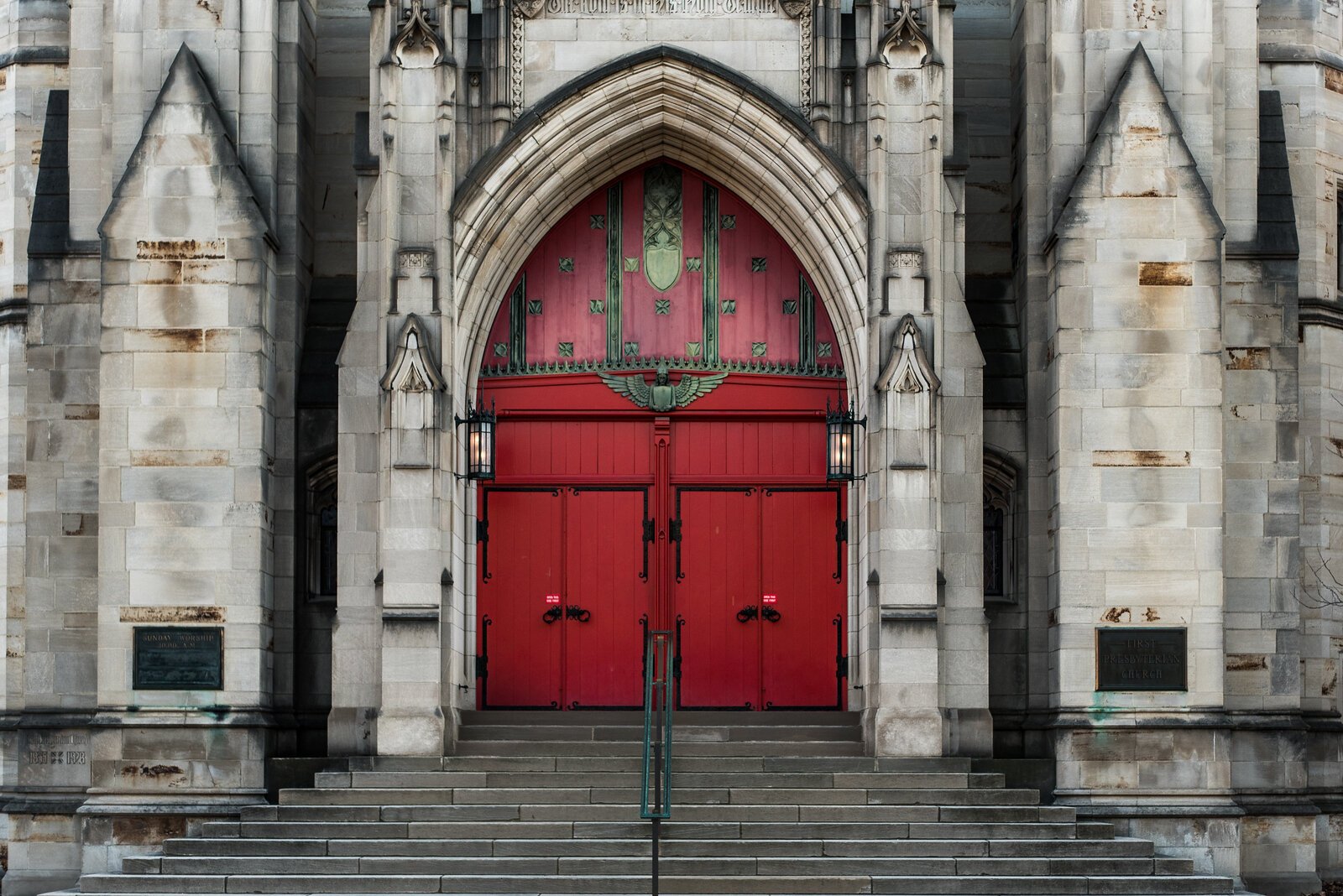 Fran Dwight – First Presbyterian’s big red doors face Bronson Park downtown.