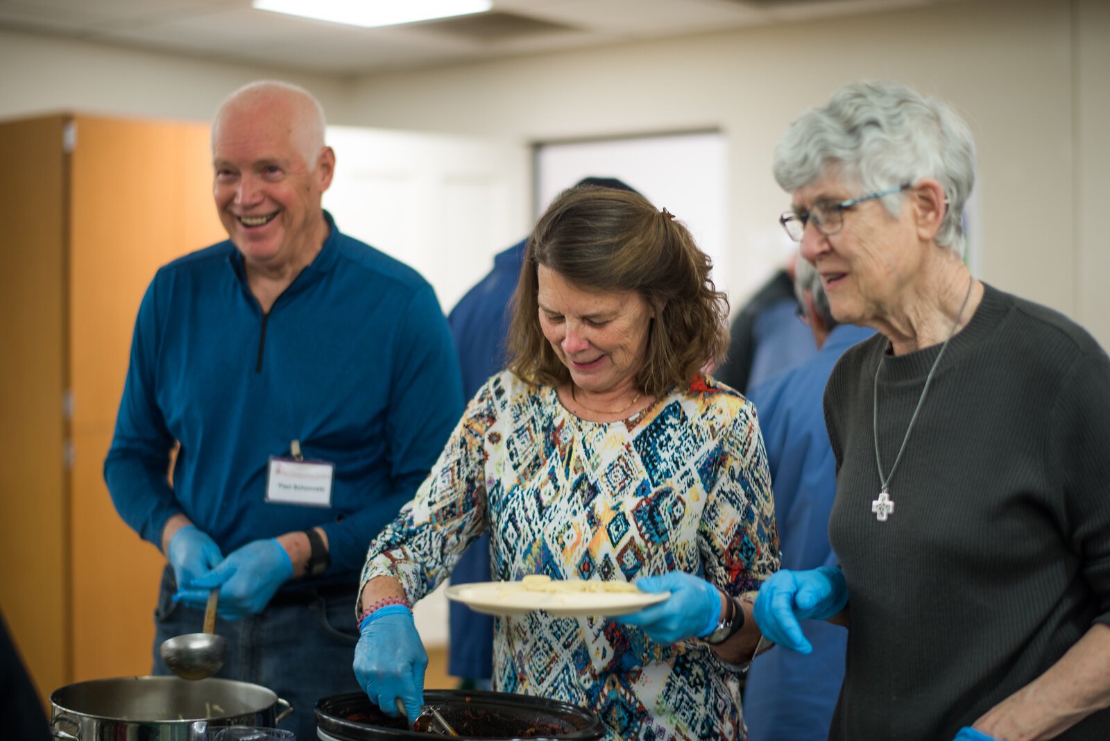 Church volunteers enjoy extending hospitality during Red Door dinners.