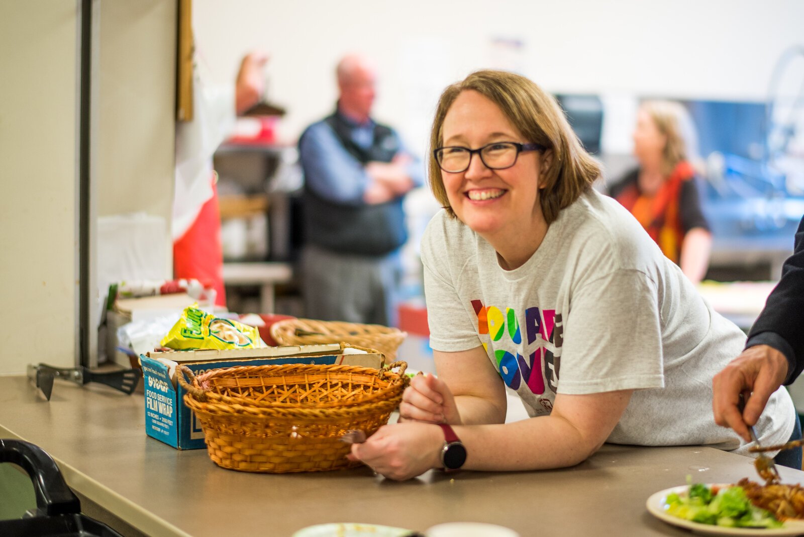 Pastor Chrissy Westbury volunteering at a Red Door Dinner