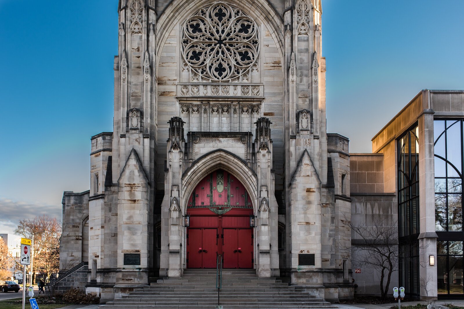 Fran Diwght – The outside of First Presbyterian, one of the beautiful, old churches that line Bronson Park