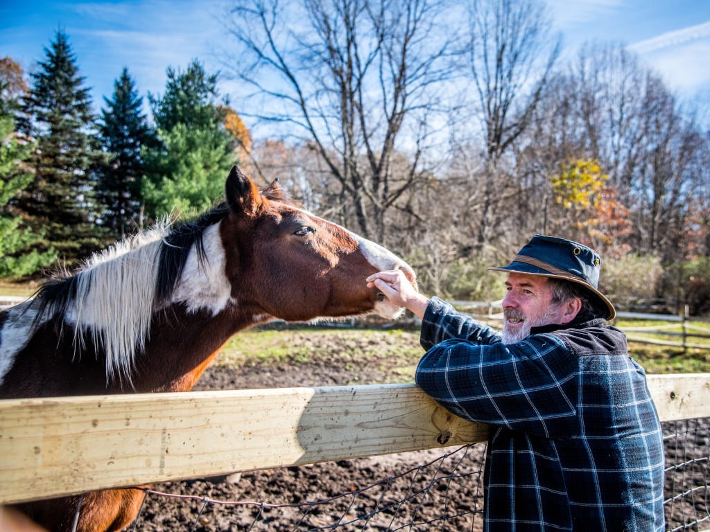 The nonprofit sanctuary is a 24/7 operation that’s more work than the three residents can handle. Chris says, “We have seven or eight really dedicated volunteers who come every week, different days of the week, to help us, to help clean stalls and stuff.”