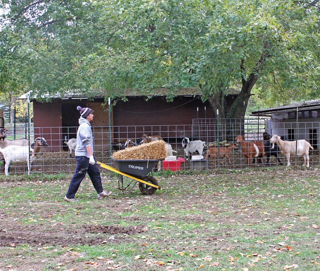 Recently, a large group of Western Michigan University students, all members of fraternities and sororities, spent much of a day at the sanctuary completing maintenance projects. Gavin Maurer, founder and president of the organization called Impact Kalamazoo, says, “We work to unite students in Greek life at WMU through different community outreach events. We were able to have over 40 students come to our event at Chubby Goat Acres on Oct. 24, and the response was overwhelmingly positive. Students had a great time working with the animals; they thought the staff was incredibly supportive and kind, and many said they would love to come back again for another volunteer opportunity.”