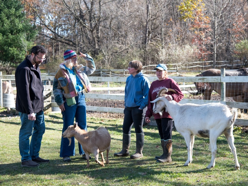 “A big part of what we do is educating people because people come here and they say, ‘Oh, your pigs are so sweet. I want a pig’ or “Oh my God, I love goats! Look how cool these goats are,'” says Chris. “So we show them what’s involved in this, and 95 percent of the time they realize that this is a very expensive individual that’s going to require a 10- to 15-year commitment.”
