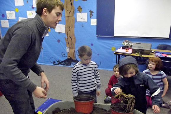 Students from preschool through eighth grade participated by planting bare root plants that will be stored at the Riverview Launch site over the winter. They will be dormant over the winter months and planted once mature in the spring.