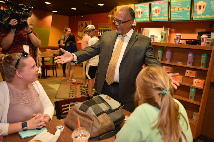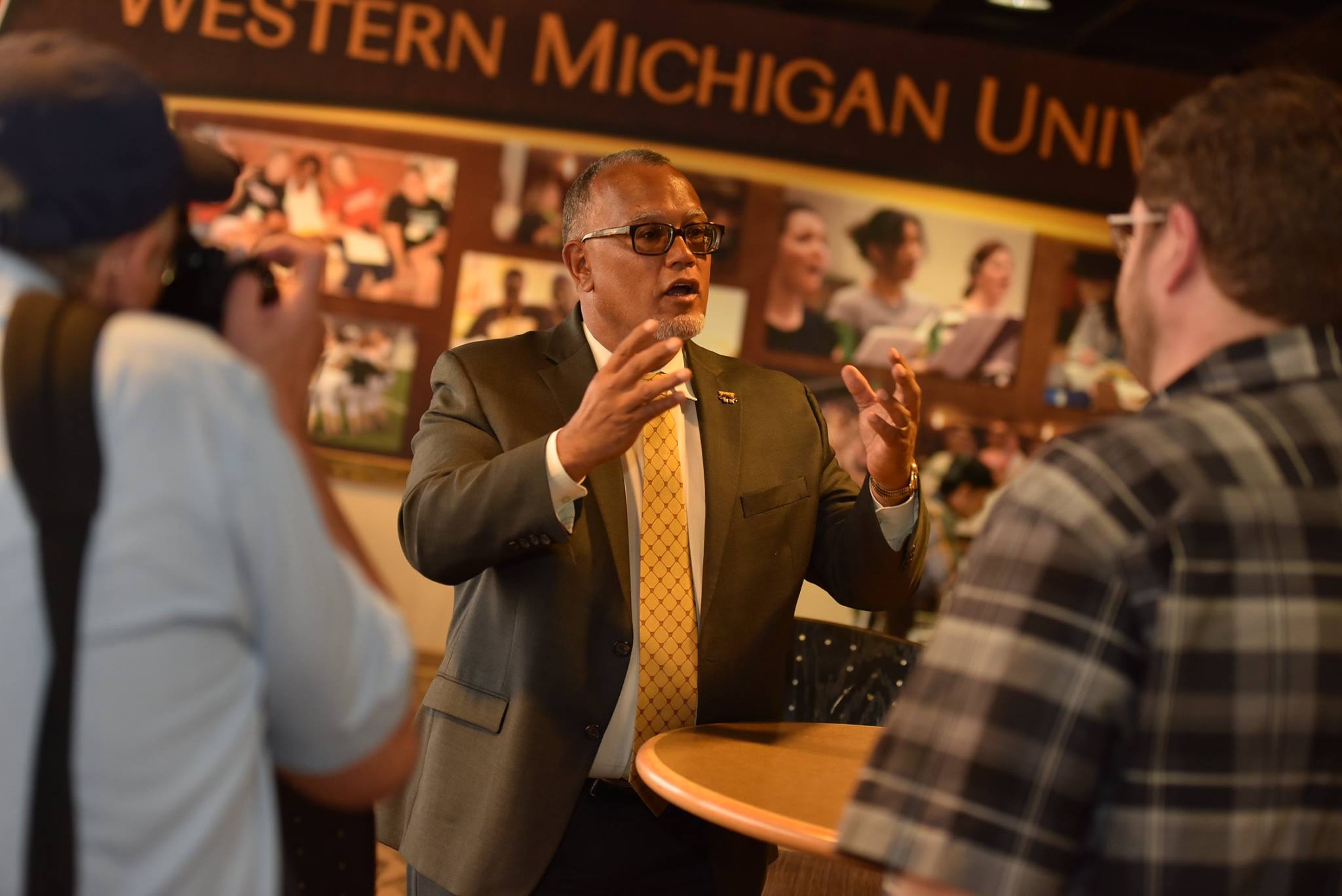 Dr. Edward Montgomery greets students, faculty, and the community in his first day on the job at WMU.