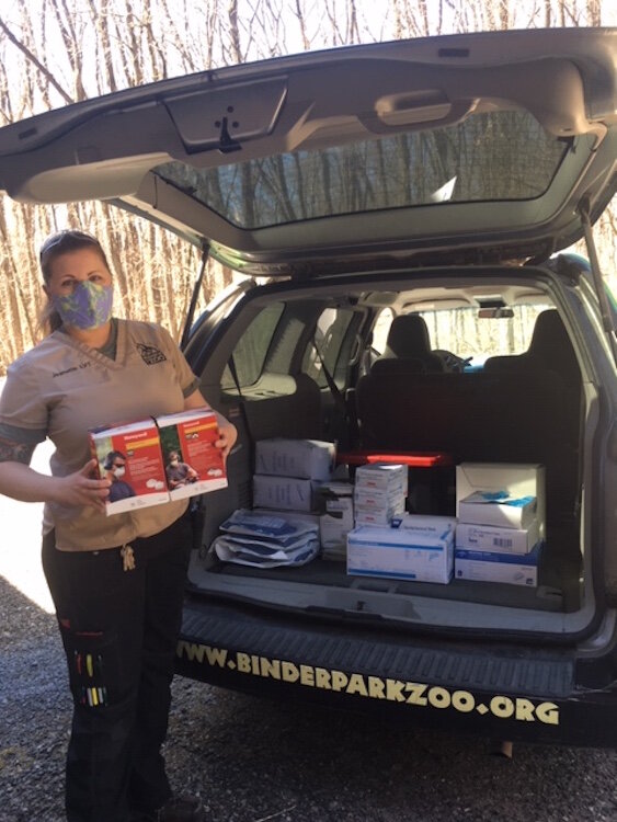 “It’s not unusual for zoos to receive donations of equipment and supplies from human hospitals,” says Dr. Kim Thompson, staff veterinarian at Binder Park Zoo. “Now the opposite is happening. And while it isn’t an enormous quantity, we are happy to return the favor and do what we can by donating important PPE equipment to help keep our health care professionals safe.”
