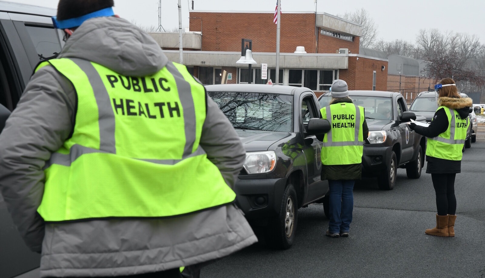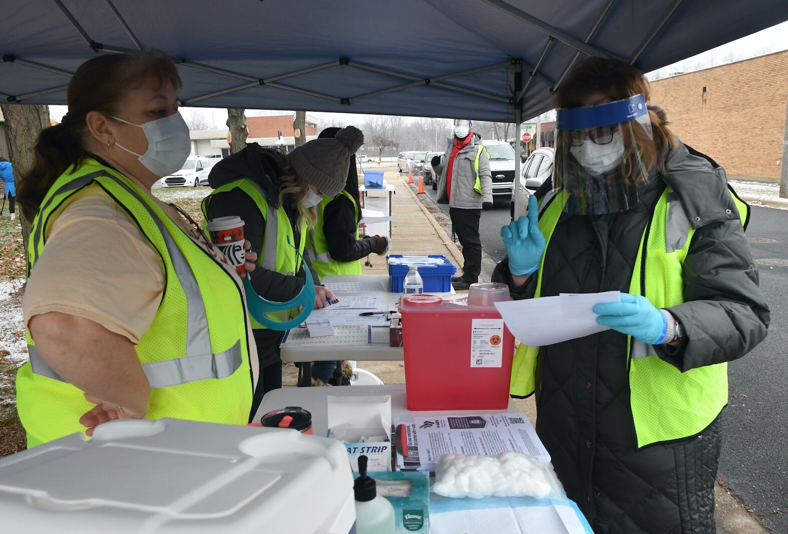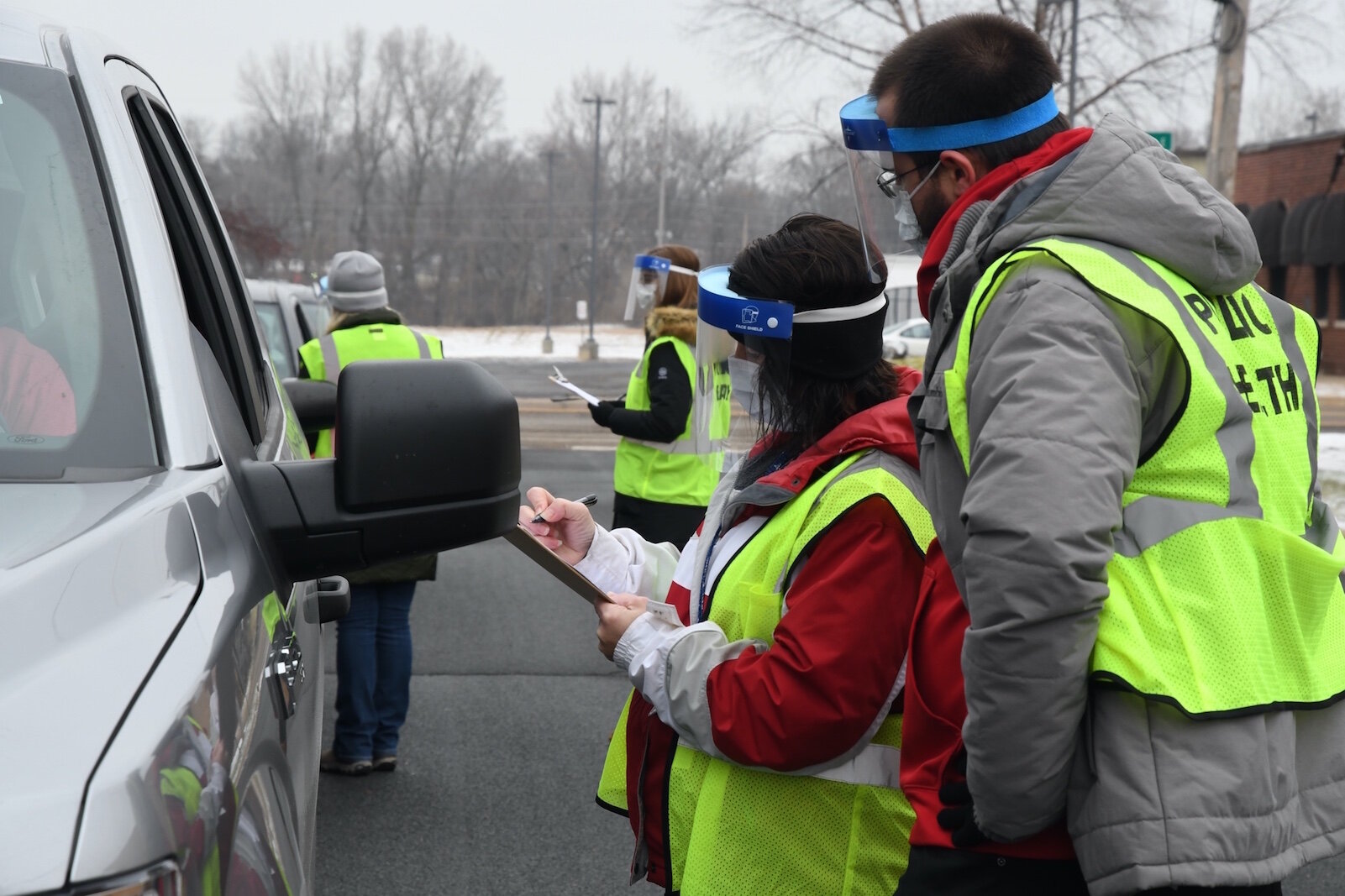 The County received 975 doses of the Pfizer-BioNTech COVID-19 vaccine which was used to inoculate staff with its health department, emergency medical responders, and other first responders, during a drive-thru clinic at the Toeller Building. Among those receiving the first doses was Lynn Corrigan who drove up in her car and waited while a nurse administered the shot.