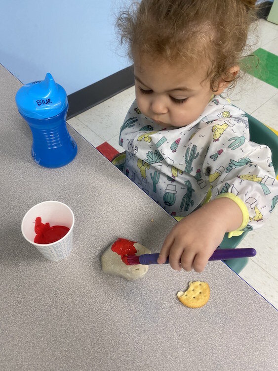 Since the Child Development Center began caring for the children of essential workers, it has been averaging between 10 and 12 children per day, some of whom have come from other Child Development Centers that are temporarily closed. These children are being cared for by a reduced staff of five.