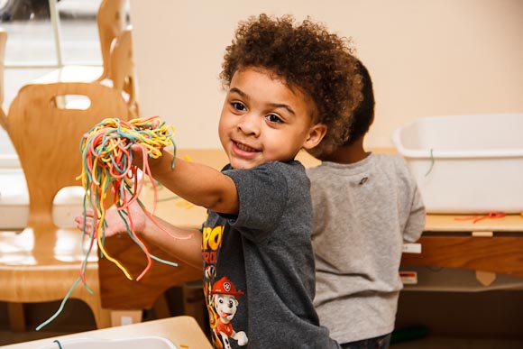 They are learning through interaction with both adults and peers, and are treated to age-appropriate lessons, guided experience-building moments — for example, “where they can play with sand, or snow,” Hinman says.