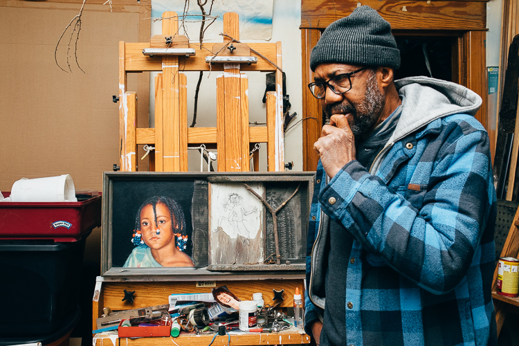 When he returned to Kalamazoo, he was fortunate to connect with some people who were renting an artist studio. “At the time, I didn’t know how to paint. I could draw a little. But I didn’t think of myself as an artist yet.”