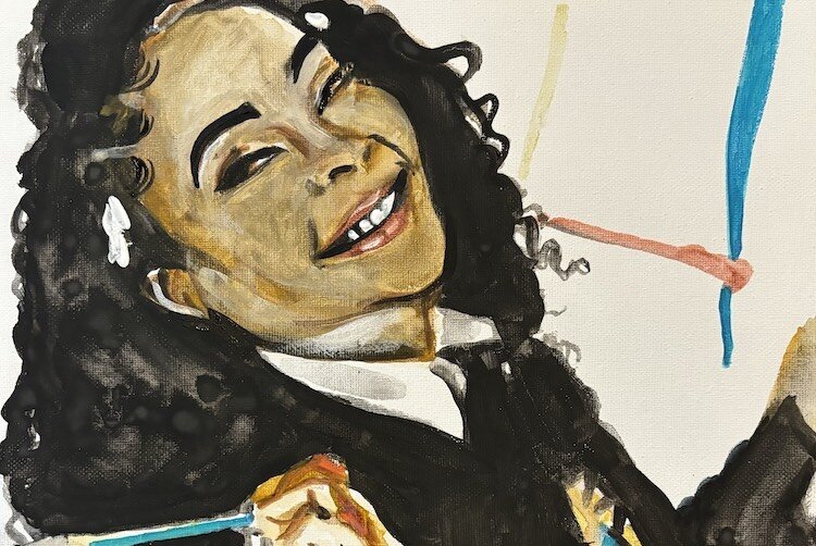 Artist: Maya James – Maya James painted this portrait of Imagine Art N Lee Owner Nicole Lee. Please see Artist Statement below.