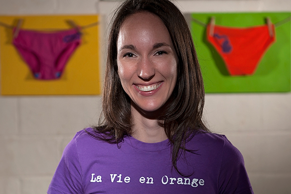 Blend a sassy style with lots of cheekiness, and deeply rooted personal values, especially environmental sustainability, and you have the high-energy Kori Jock's La Vie en Orange, which turns T-shirts into hand-made underwear designed to make you happy.