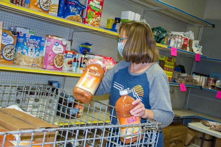 “We have to check the dates, because a lot of folks like to clean their pantries when they donate. We also do Christmas baskets, and we’re getting slim pickings…. It’s rough all over. I try to provide as much variety as I can for our pantry. It keeps them coming back. Having things they like to eat, over getting a box of food that they’re not going to eat — we have a lady who, I assume (receives food boxes at Loaves and Fishes) on Portage Street, and she takes everything she doesn’t like out of her boxes and donates to our pantry. At least it’s keeping everything in the system, because not everybody likes the same thing. We get what we can get when we get it.”