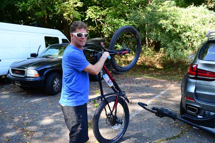Mountain biker John Kittredge, getting ready to ride Maple Hill on an unseasonable 90-degree-plus September Saturday, says the trail has sections both for newbies and bikers who want a challenge. “It’s of varying terrain, it’s machine made so it’s got great flow to it. It depends on how hard you want to go.”