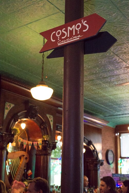 The pub, in fact, was originally a way to be able to serve liquor at Cosmo’s because “a lot of people like a drink with their meal,” says Kavanaugh.