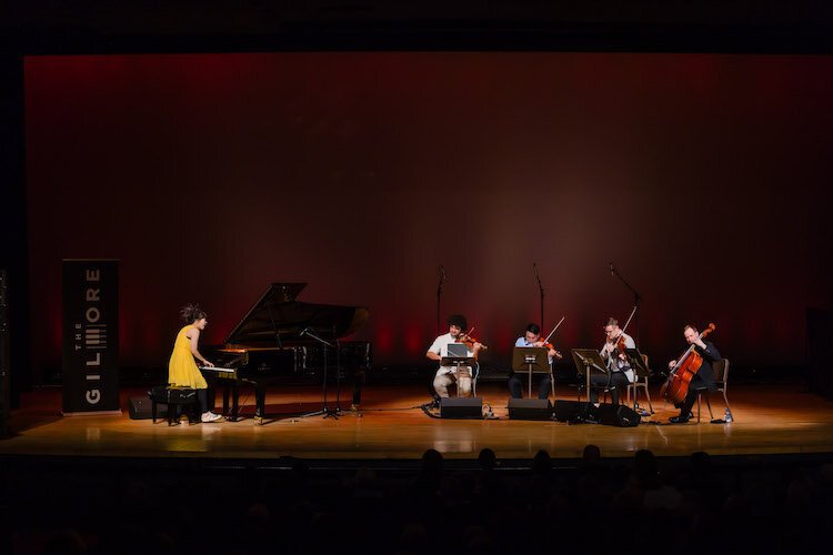 That: A fireworks blast of a set Wednesday night, at Chenery Auditorium, the opening concert for the 2024 Irving S. Gilmore International Piano Festival. Hiromi Uehara, usually simply known as Hiromi, native of Hamamatsu, Japan, playing her deliriously fun mix of jazz past and future, backed by a genre-hopping, Grammy-nominated, modern string quartet out of New York, PUBLIQuartet.