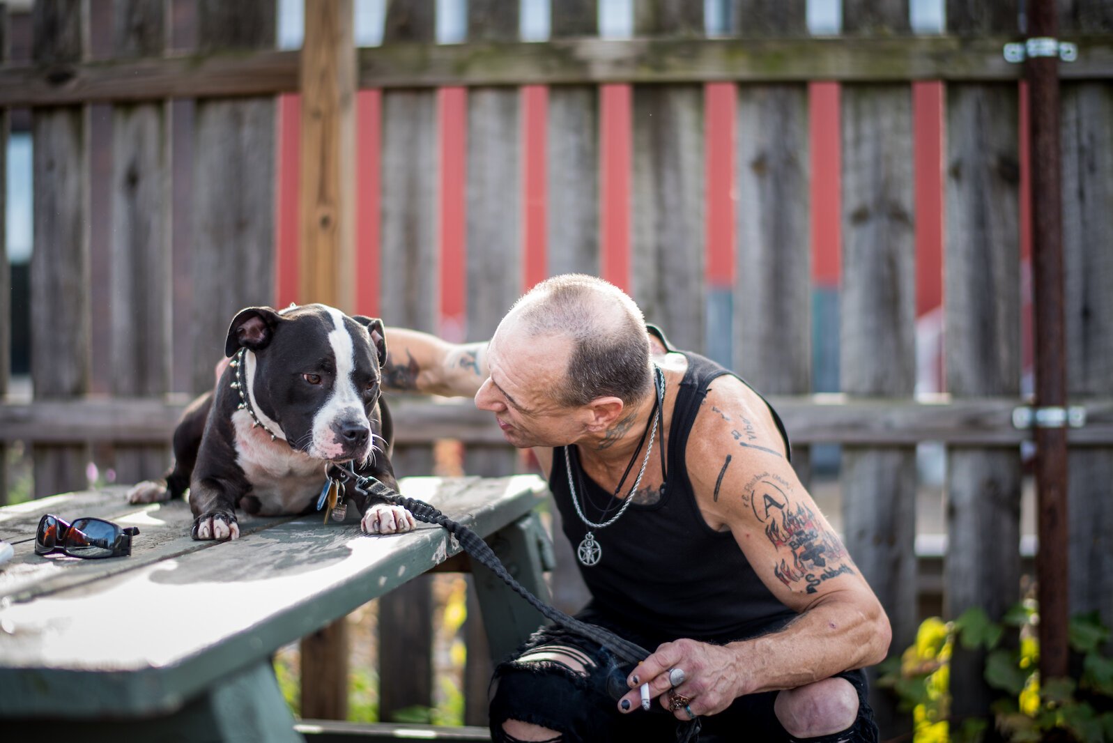 Barrett was sheltering under the East Michigan bridge by Rose Park Veterans Memorial when the river flooded. “I watched the water rise up between two tents,” he says. He grabbed his essentials and Remy. “I left everything else behind, I didn’t care. I’m out of there.”