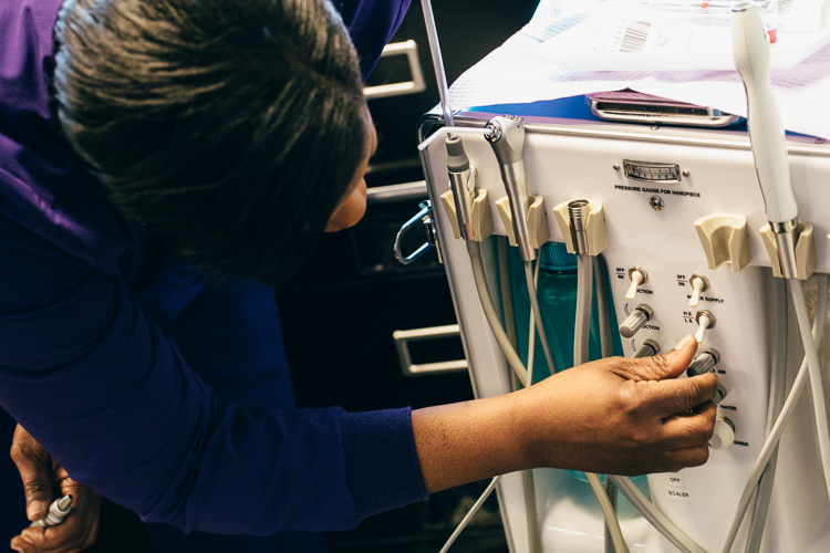 “What I’ve experienced being out here in the public is that dental health is low on the totem pole,” says Burns, who has worked in the dental field since she was in high school, as an assistant and then for years in an office as a hygienist. “You see mobile nurses, doctors, podiatrists, obstetricians, even mobile opticians, but few mobile dentists.