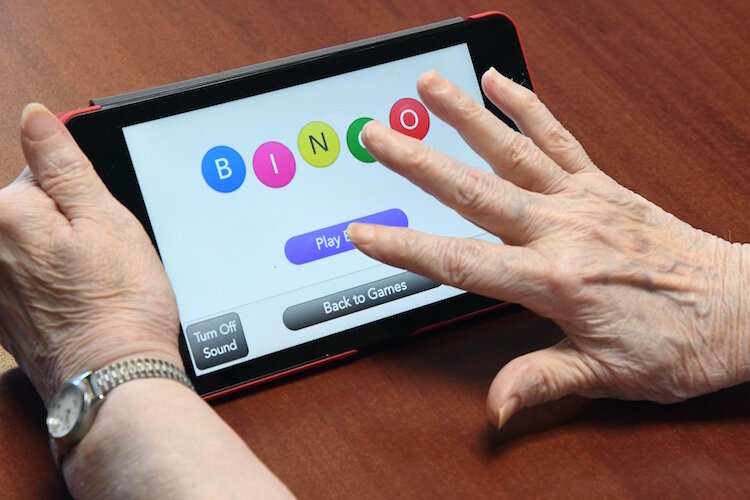 “I can get a music lesson or entertainment. I can play games like Bingo and Hangman. I can get exercise classes on it and I can see the woman doing them in my home,” Finn-Cummings says. “When I’m waiting for the bus to come, I play Bingo. There are all kinds of card games and crossword puzzles. There’s also Zoom video calls.”