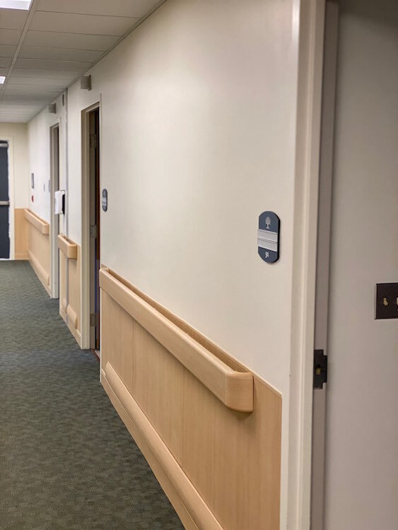 Among other things the isolation center has been designed to isolate the flow of air into and out of the unit and to channel how people move through the unit. It is a conversion of part of the community’s Harold & Grace Upjohn Care & Rehabilitation Center. It has nine rooms that will each be used initially as private rooms. Each room can accommodate two people, however, and may be used that way if the need arises, Prince says.