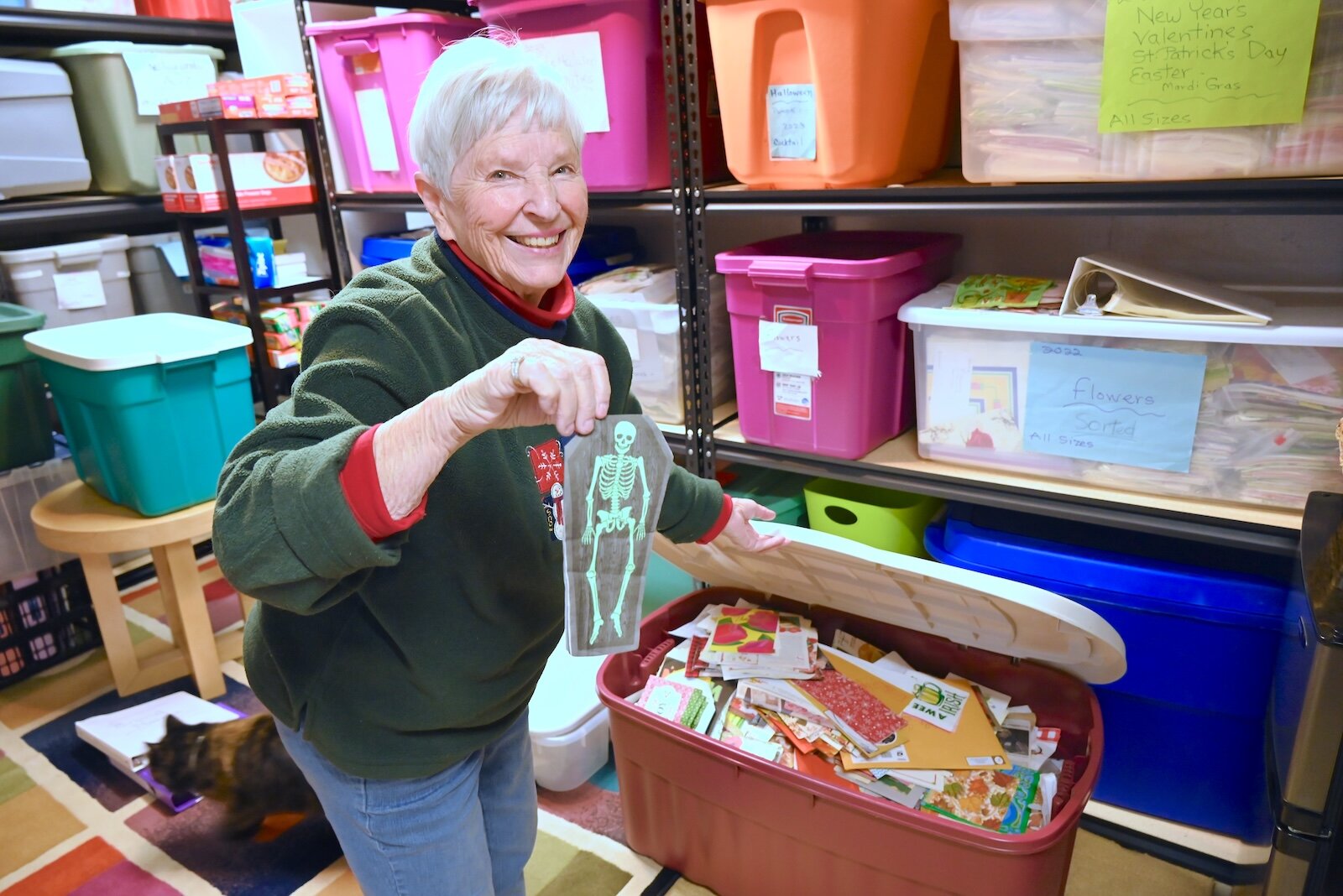 Bins containing Cathy Campbell’s collection of napkins