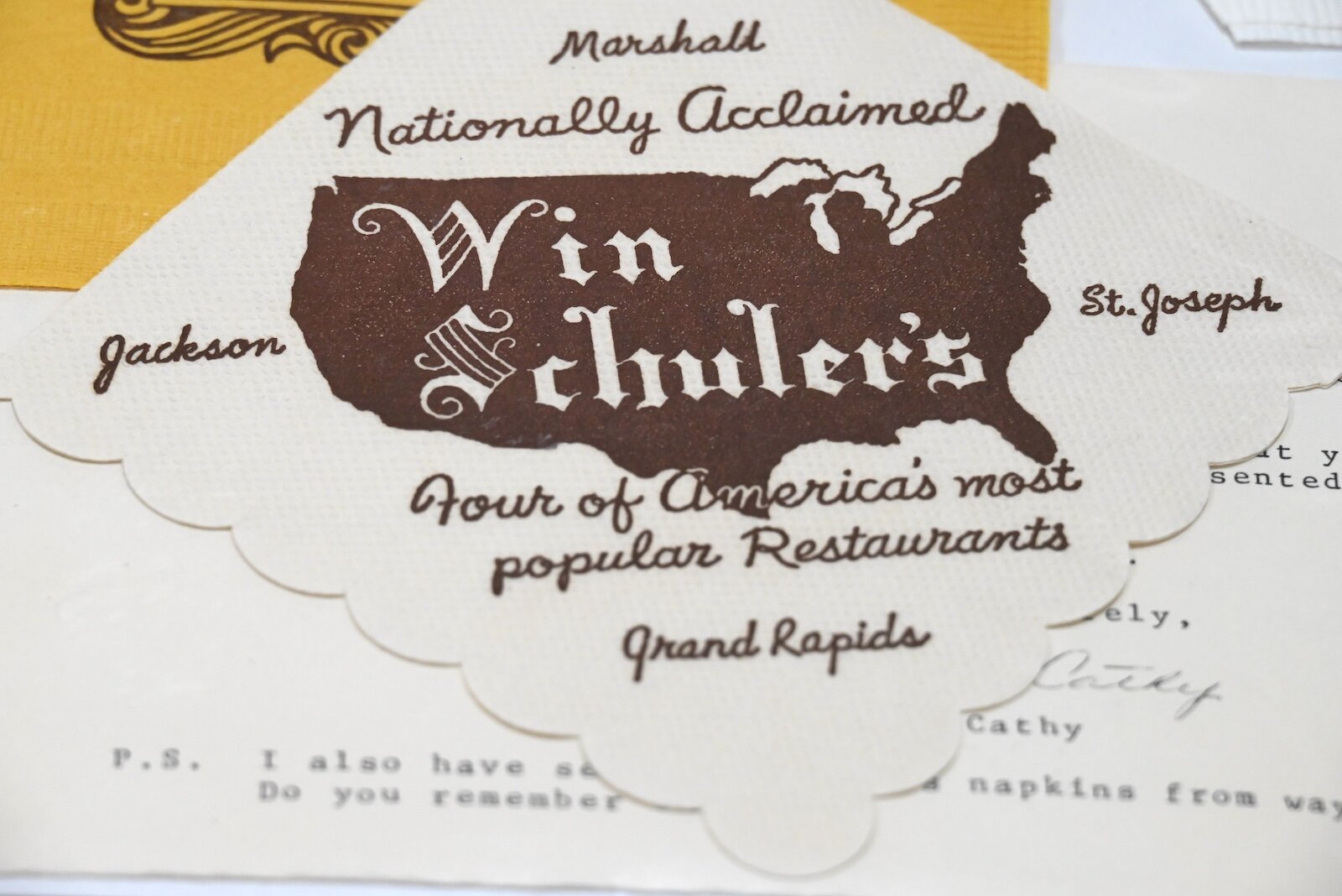 Some cocktail napkins from Win Schuler’s